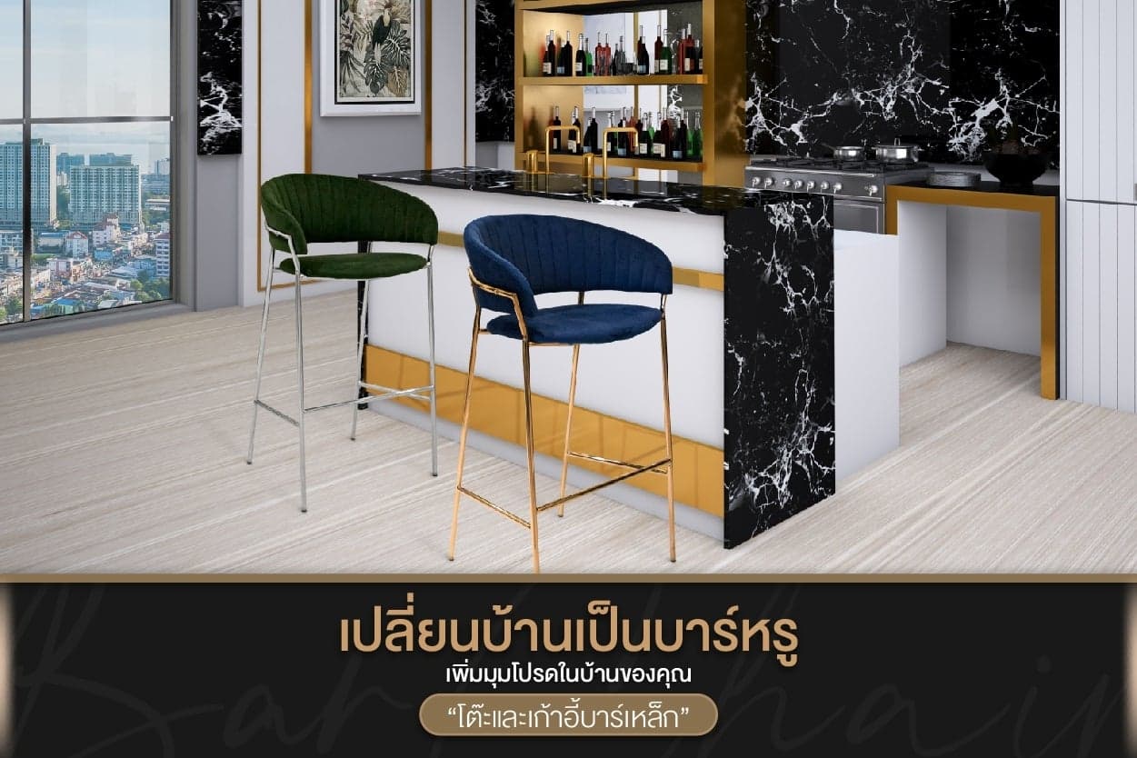 เสริมโต๊ะและเก้าอี้บาร์เหล็กเปลี่ยนบ้านเป็นบาร์หรู