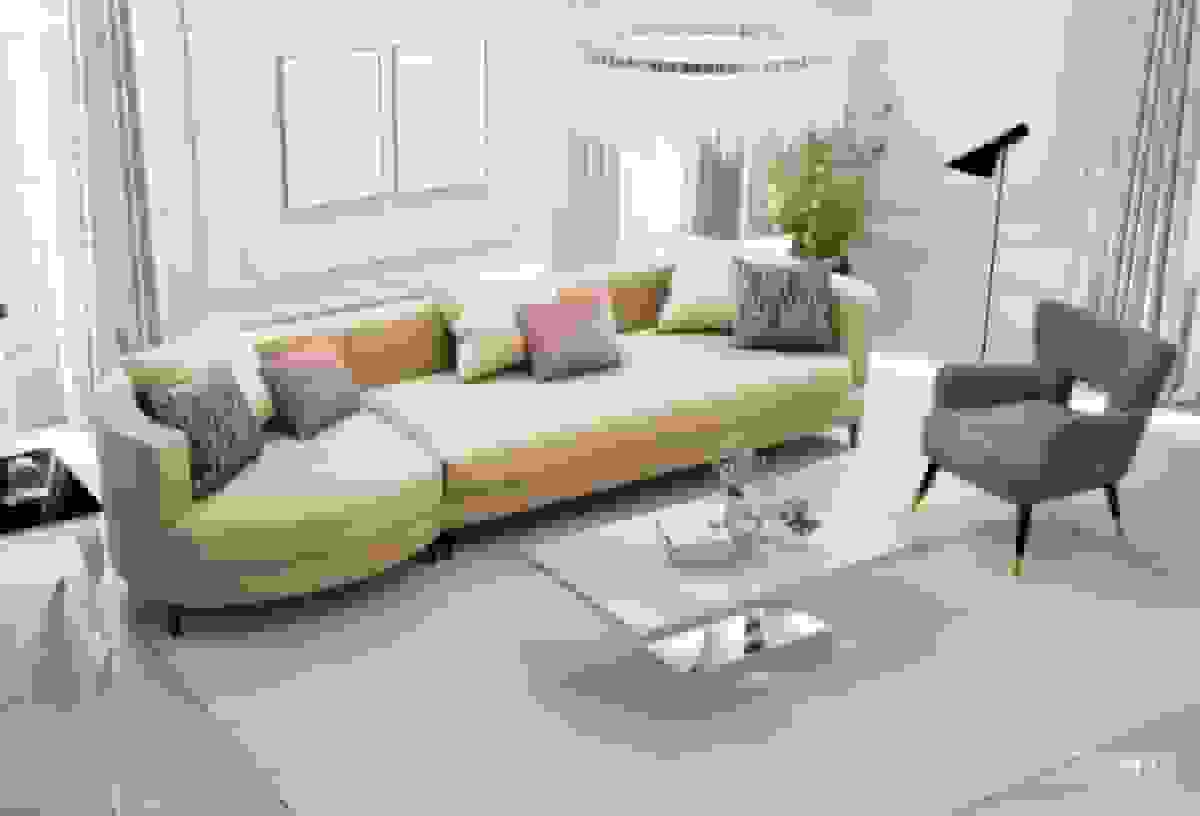 ห้องขนาดใหญ่มีอิสระในการเลือกโซฟามากขึ้น แต่ก็ต้องระวังไม่ให้พื้นที่ดูโล่งหรือกระจัดกระจายเกินไป เหมาะกับ