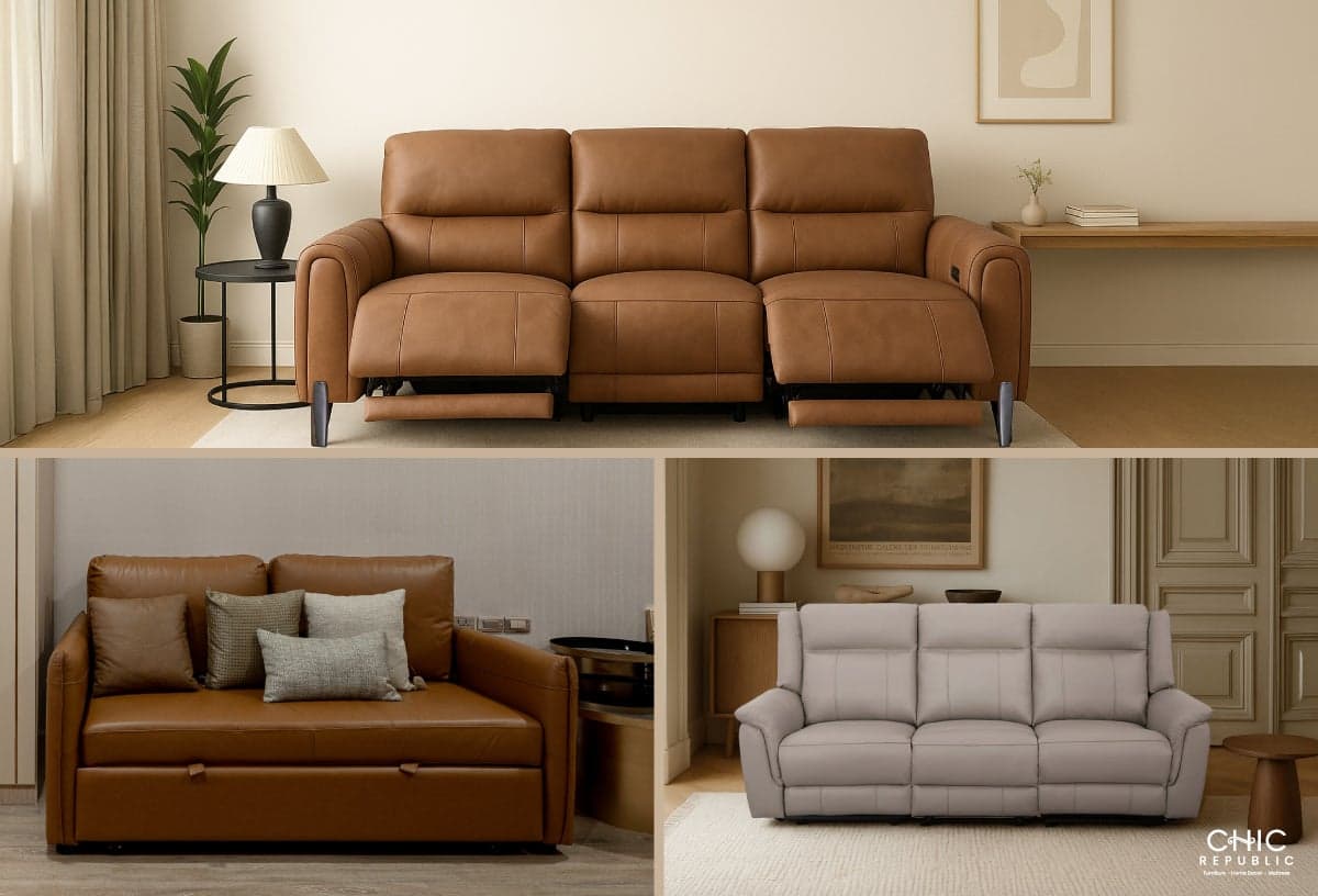 หากคุณกำลังมองหา โซฟาหนัง ที่ทั้งสวยและใช้งานได้จริง Chic Republic มีตัวเลือกหลากหลาย ทั้งแบบ 2–3 ที่นั่ง, L-Shape และ Recliner ดีไซน์ตอบโจทย์ไลฟ์สไตล์คนเมือง พร้อมวัสดุคุณภาพสูง งานฝีมือปราณีตและฟังก์ชันที่ตอบโจทย์ทุกการพักผ่อน